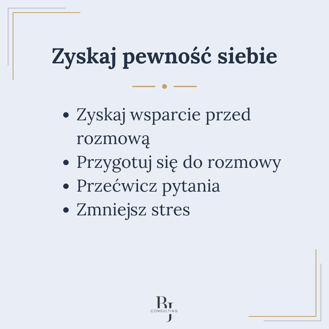 - Przewagę nad innymi kandydatami – dzięki przygotowaniu będziesz lepiej prezentować się w oczach rekruterów.