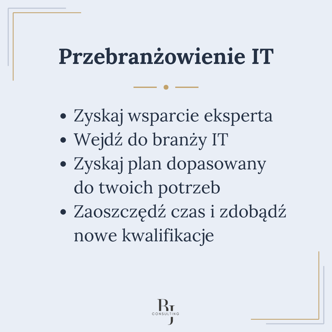 ℹ️ Pamiętaj: Przebranżowienie wymaga czasu i konsekwencji. Konsultacja da Ci wskazówki, narzędzia i plan, ale efekty przyjdą wtedy, gdy systematycznie zaczniesz działać.